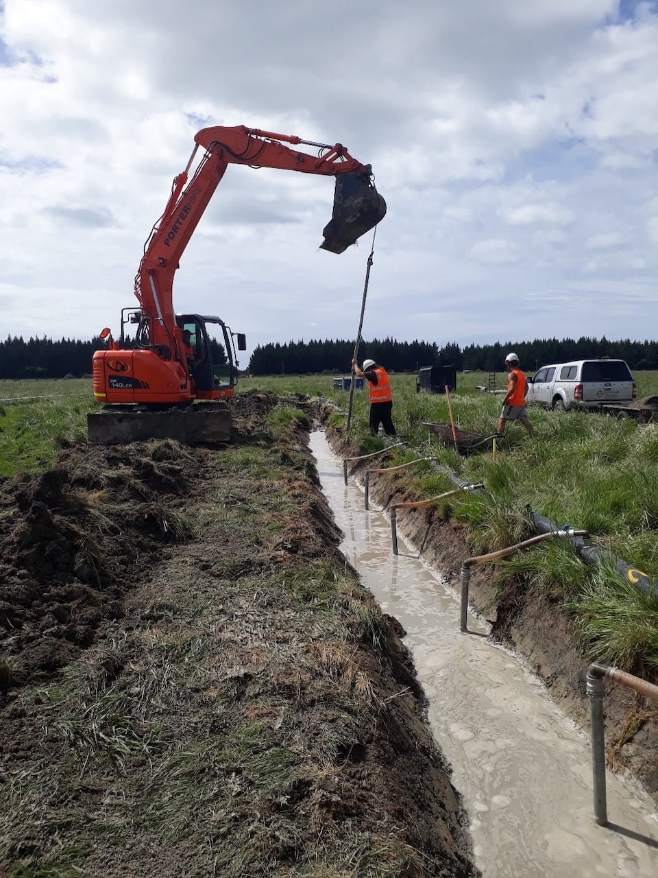 Installation of 1,089m of 450mm PE pressure sewer pipe to the Kaiapoi Wastewater Treatment Plant, through McIntosh Drain, requiring dewatering.